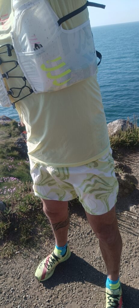 Ce dernier élément est important au vu des épreuves à affronter. J’avais ciblé plusieurs produits à tester en priorité chez Compressport et à intégrer à mon kit race : tee-shirt, short et gilet d’hydratation.