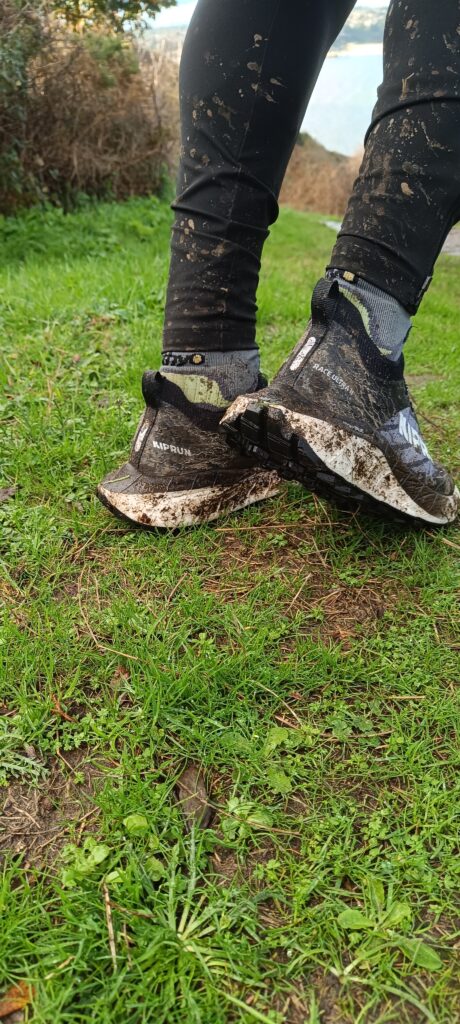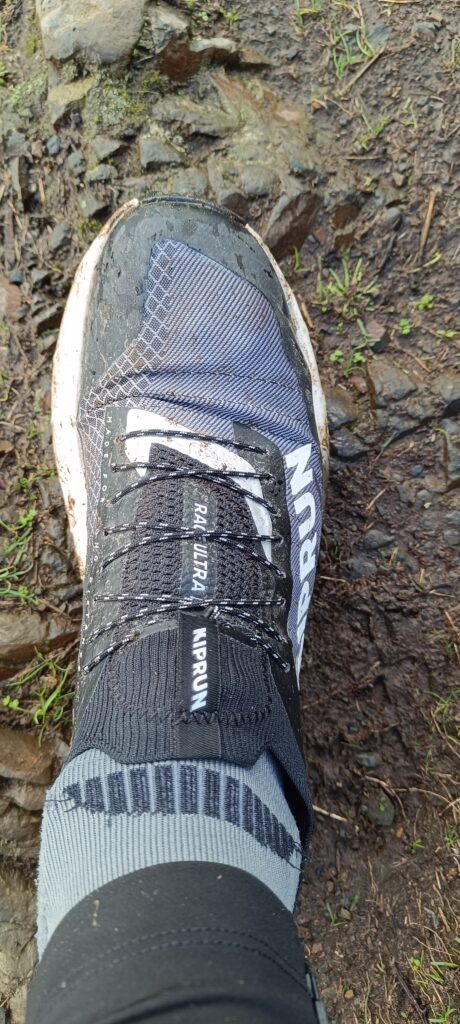 Ce qu’il en ressort c’est que le laçage est bien dosé, sans aucune compression du pied. De plus, il ne bouge pas, ne se desserre pas au fil des kilomètres, malgré la pluie, la boue. Ici, KIPRUN a intégré un range lacets, utile et sécurisant, au niveau de la languette, qui elle, épouse parfaitement bien le pied. Le lacet ne pouvant pas de se détacher et se prendre dans une racine par exemple!