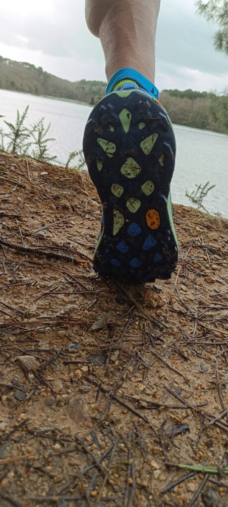Ce qui m’a interpelé en premier, c’est son cramponnage! La traction lug de 5 mm est impressionnante visuellement parlant. Sur le terrain, la paire accroche la surface comme jamais. Je peux négocier mes trajectoires sans aucune crainte. Je suis bluffé par l’adhérence de ce modèle. Ici, on peut affirmer que l’adhérence est maximale sur les sentiers techniques.