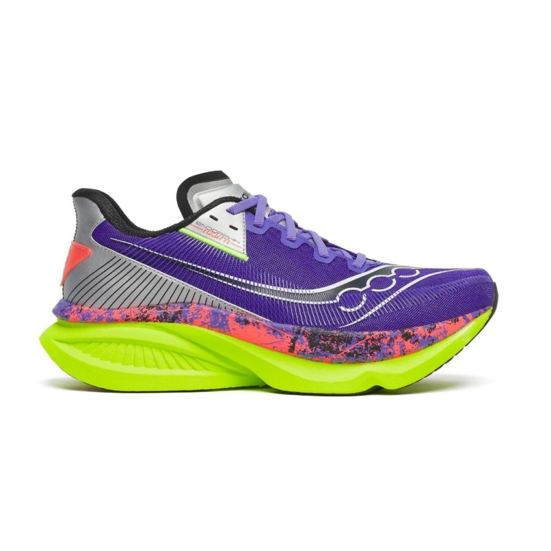 SAUCONY ENDORPHIN PRO 4 GALAXY  Intégralement imaginé pour la performance, l'ENDORPHIN PRO 4 GALAXY donnera un nouvel élan à votre course ! Imaginé plus légère, plus respirante et translucide que son précédent modèle, vous aurez toutes les cartes en mains pour battre vos records. La dernière génération de composé PWRRUN HG vous offre un meilleur retour...