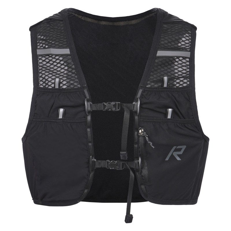 Rukka Uuras gilet unisex. Hyper léger comportant 4 poches sur le devant, pour y intégrer flask et de quoi vous alimenter. Une grande poche dans le dos ainsi que deux poches zippés, parfait pour vos téléphones et vos clés. Ce sac est très extensible et épouse parfaitement votre anatomie, des élément réfléchissants pour votre course nocturne, ventilation en maille, deux attaches au niveau de la poitrine. La surface du tissu a été traitée avec une finition déperlante .